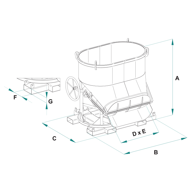 BOT-GAVOval concrete bucket with side discharge and large wheel opening