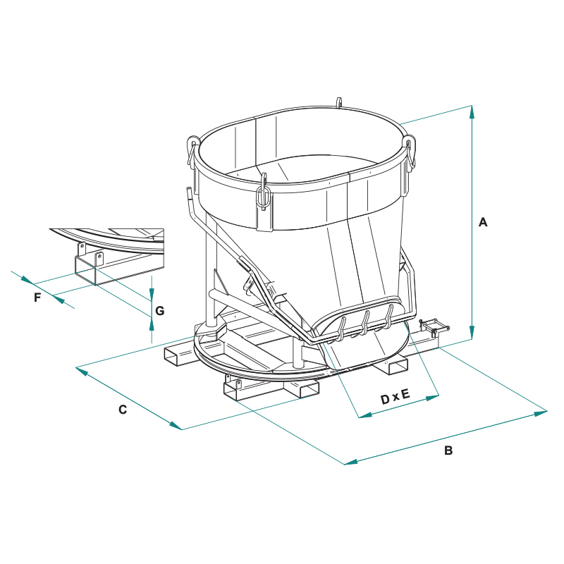 BOT-GALOval concrete bucket with side discharge and large lever opening
