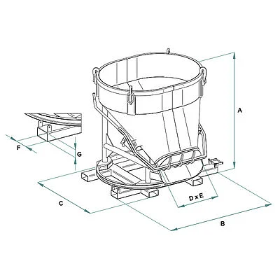 The BOT-GAL model is an oval-shaped concrete bucket specially designed to excel in concrete pouring operations, particularly in the prefabrication sector. Featuring a side discharge with guillotine closure and a wide opening controlled by two lateral levers, the BOT-GAL ensures optimal control of concrete during the discharge process, ensuring efficient and safe flow. The forkable base allows quick and safe lifting via forklift or telehandler, contributing to increased productivity and reduced downtime. Crane lifting is facilitated through four lifting points to ensure stability. The finish is powder-coated in RAL 1003 color. Available in various sizes and capacities, as specified in the table below, the BOT-GAL model can be customized to fit the specific needs of your project. All our