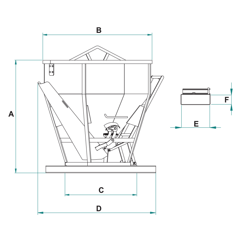 CL-STConical concrete bucket with central and side discharge, equipped for forklift handling