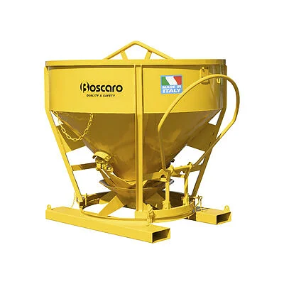 The C-N model is a reinforced conical bucket designed for handling large volumes of concrete on construction sites. The C-N model features a practical and simple design, with a lowered edge height to facilitate filling with a concrete mixer truck. Additionally, the convenient handle assists the operator in opening the dual-valve discharge gate, while the two springs positioned near the discharge facilitate its closing.